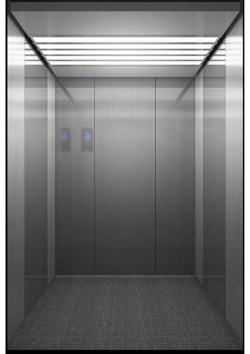 天井:ECO-HJ;鏡面不銹鋼+發(fā)紋不銹鋼  前側(cè)板、門楣:發(fā)紋不銹鋼  兩側(cè):彩紋鋼板(KB10)+鏡面飾條+發(fā)紋不銹鋼  后側(cè)板:鏡面不銹鋼  轎門:發(fā)紋不銹鋼  操作盤:BM-D2FT6  地板:PVC(FL-PH23)