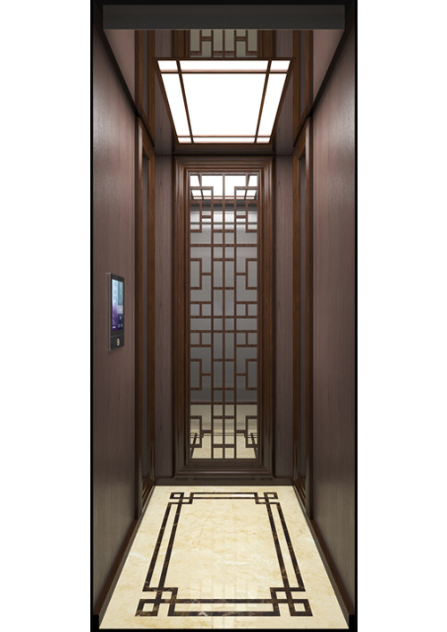 轎廂款型:雅致別院  天井ECO-YZ,鏡面不銹鋼+實(shí)木飾條  前側(cè)板發(fā)紋不銹鋼  門楣發(fā)紋不銹鋼  兩側(cè)藝術(shù)貼膜鋼板WE423(阿拉伯刺槐)+實(shí)木線條鏡框+鏡面不銹鋼  后側(cè)板藝術(shù)貼膜鋼板WE423(阿拉伯刺槐)+實(shí)木線條鏡框+鏡面不銹鋼  轎門發(fā)紋不銹鋼  操作盤BC-T8A1  踢腳板實(shí)木  地板大理石(金線米黃+深啡網(wǎng))