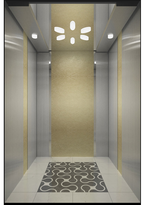 天井:ECO-MY;發(fā)紋不銹鋼+鋼板烤漆(BN-10)  前側(cè)板、門楣:發(fā)紋不銹鋼  兩側(cè):彩紋鋼板(KB19)+發(fā)紋不銹鋼+鏡面飾條  后側(cè)板:彩紋鋼板(KB19)+鏡面不銹鋼  轎門:發(fā)紋不銹鋼  操作盤:BC-D2F2  地板:PVC拼花(FL-PH25)
